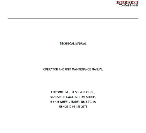 US Army, Technical Manual, TM 55-2210-223-12, OPERATORS AND UNIT MAINTENANCE MANUAL, LOCOMOTIVES, DIESEL-ELEC 56 1/2-INCH GAGE, 60-TON, 500 HP, 0-4-4-0 ... 2210-01-158-2978), {TO 45A2-2-14-41}, 1987. , please contact Amazon.com directly.
