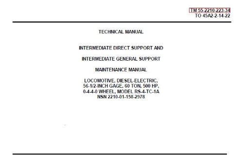 US Army, Technical Manual, TM 55-2210-223-34, LOCOMOTIVE DIESEL-ELECTRIC: 56-1/2-INCH GAGE, 60-TON, 500 HP, 0-4-4-0 WHEE BALDWIN-LIMA-HAMILTON, MODEL RS-4-TC-1A, (NSN 2210-01-158-2978), 1987. , please contact Amazon.com directly.
