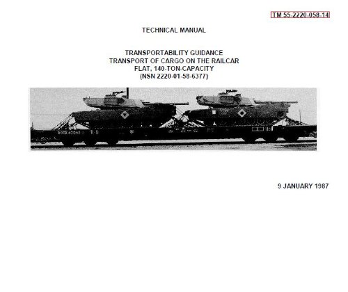 US Army, Technical Manual, TM 55-2220-058-14, TRANSPORTABILITY GUIDANCE FOR TRANSPORT OF CARGO ON THE RAILCAR FLAT, 140-TON CAPACITY, (NSN 2220-01-058-6377), 1987